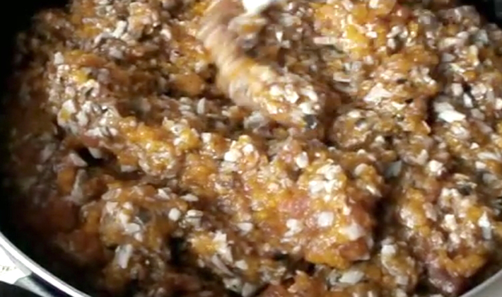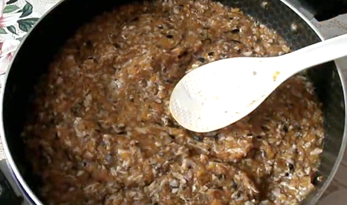 - Tout est assaisonné au goût, du poivre, des herbes provençales sont ajoutées et, en remuant constamment, cuits à feu doux pendant 60 minutes.