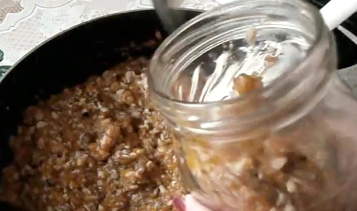 Remuez, faites frire pendant 10 minutes, salez au goût, mettez dans des bocaux stérilisés d’une capacité de 0,5 l.