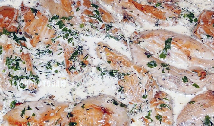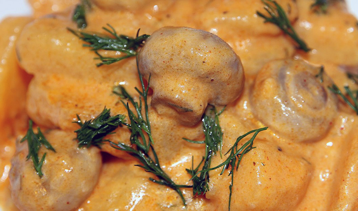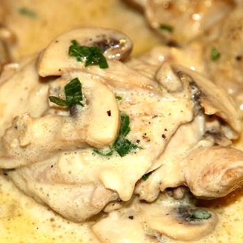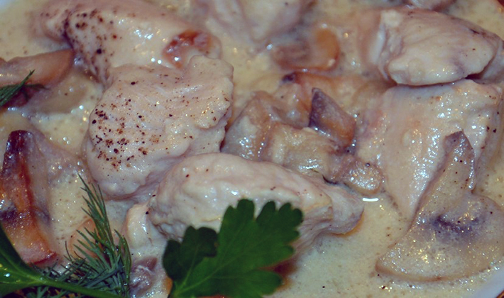 - Champignons en sauce à la crème sure avec poulet