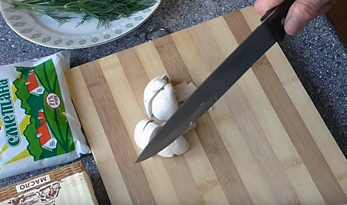 - Couper les champignons en tranches et les faire revenir dans l'huile jusqu'à ce qu'ils soient dorés.