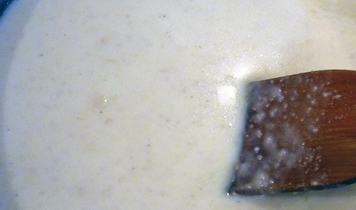 - Réduire le feu au minimum, introduire doucement et lentement les jaunes, en remuant constamment.