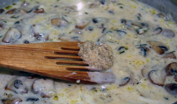 La recette de la sauce aux champignons, à la crème sure et au fromage est décrite en détail.