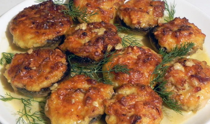Les champignons farcis cuits dans une sauce à la crème sure sont une excellente option pour une collation.