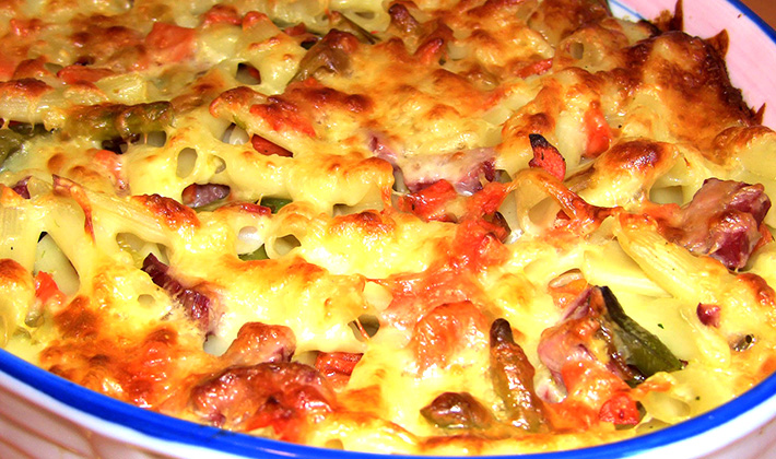 - Pâtes au four avec viande et champignons