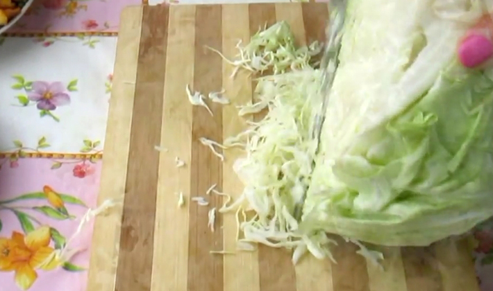 - Ensuite, vous devriez faire cuire le chou - pelez et hachez avec des pailles.