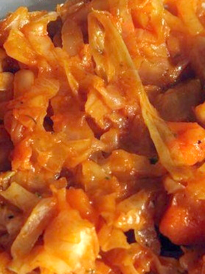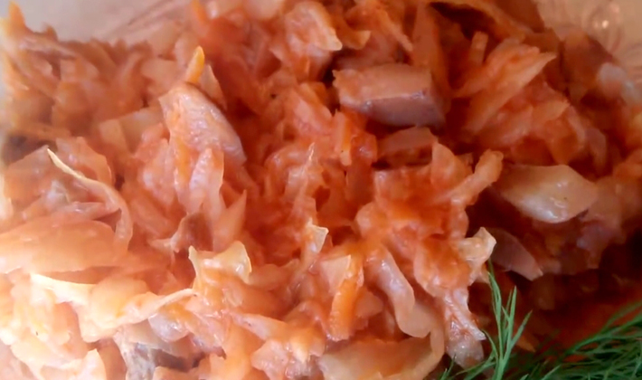 - Râpez le chou, faites-le frire dans une poêle avec de l'huile végétale jusqu'à tendreté.