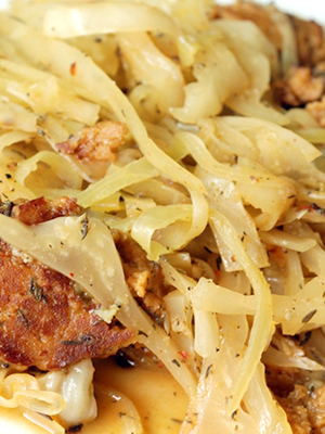 Le chou frit aux girolles est un plat délicieux et satisfaisant qui peut être utilisé comme accompagnement de côtelettes juteuses ou de boulettes de viande hachées.