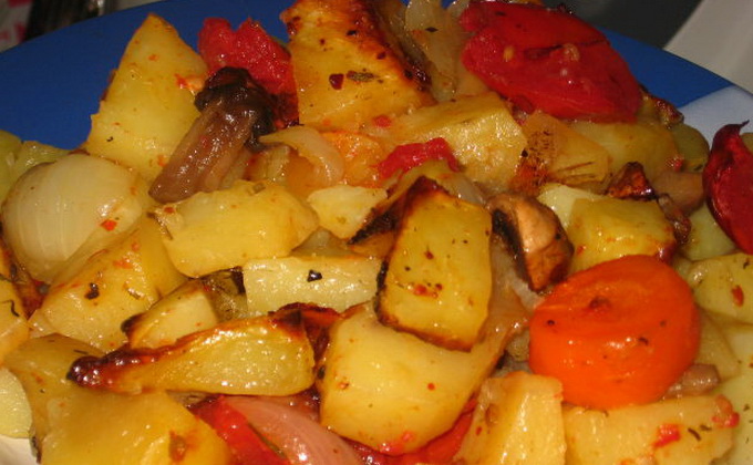 Pomme de terre aux champignons et tomates dans la manche