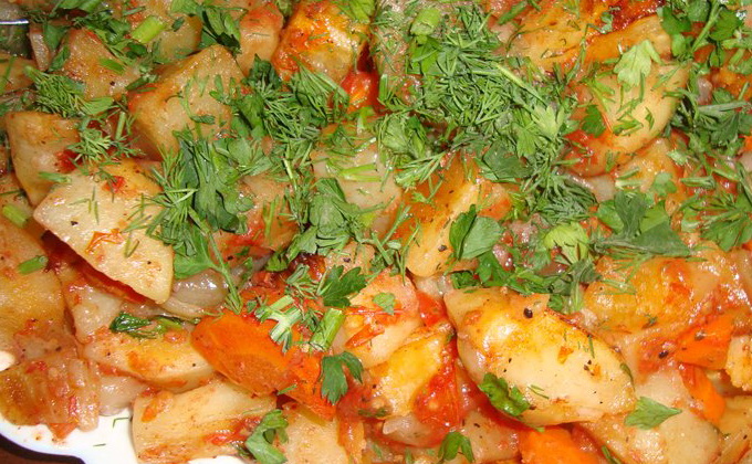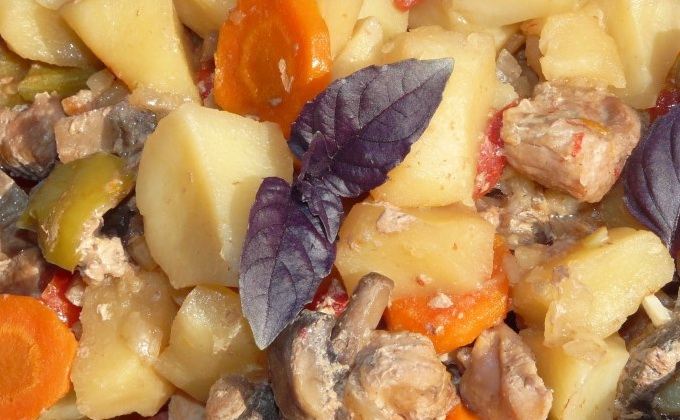 - Pomme de terre juteuse avec champignons et carottes dans la manche
