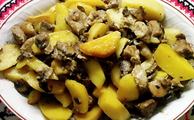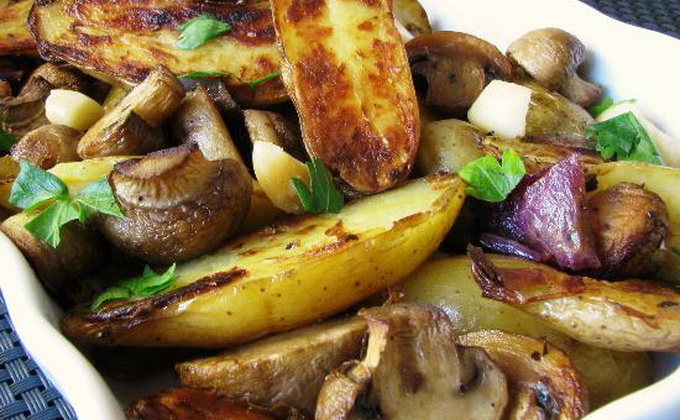 Regardez la photo pour les recettes de pommes de terre avec des champignons dans la manche, présentée ci-dessus: