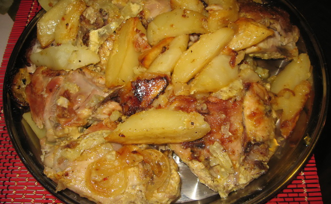 - Pomme de terre au four avec champignons et poulet