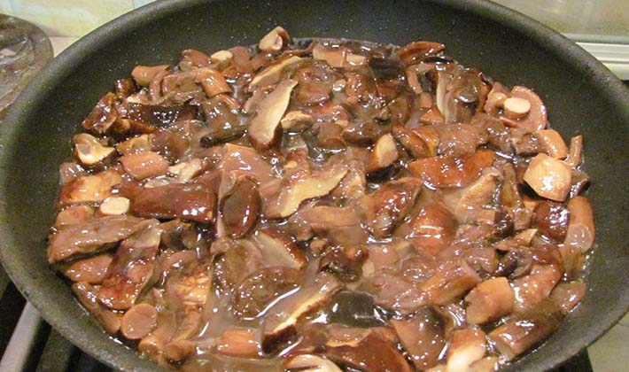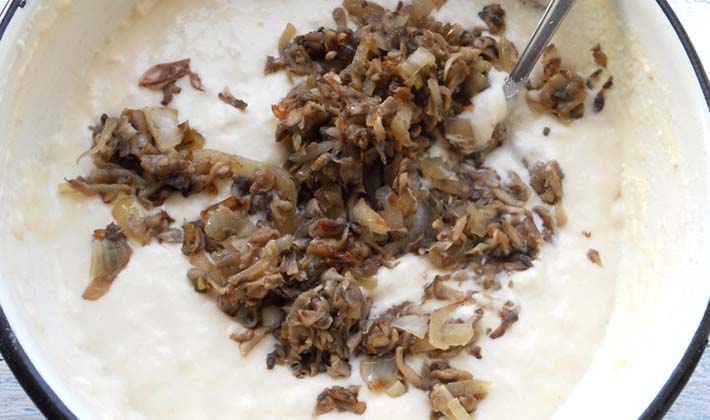 - Si nécessaire, faites cuire à l'avance les champignons avec les oignons hachés et laissez-les refroidir. J'ai déjà été cuisiné.