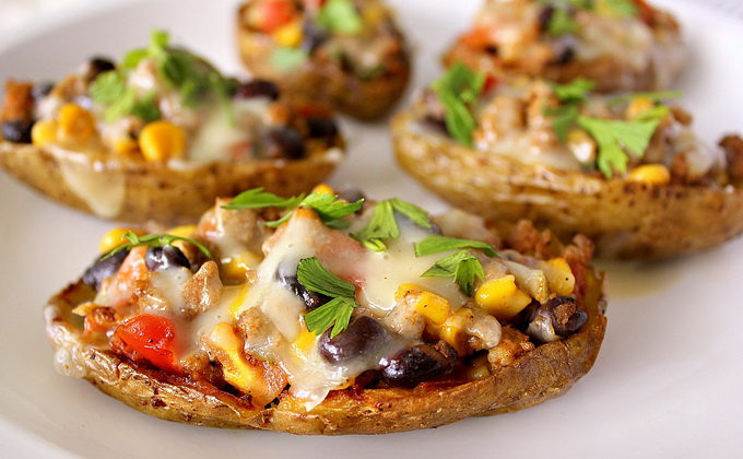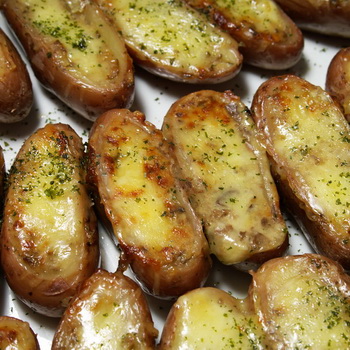 Cuire les pommes de terre veste. Quand il refroidit, nettoyez-le. Couper en deux et doucement avec une cuillère à thé faire des empreintes, comme sur la photo.