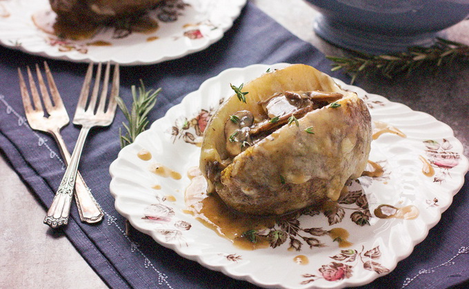 Regardez à quoi ressemblent délicieusement des pommes de terre farcies aux champignons cuites au four sur ces photos: