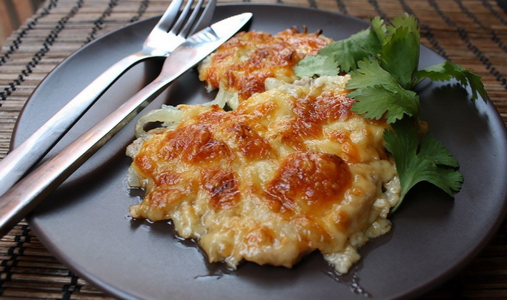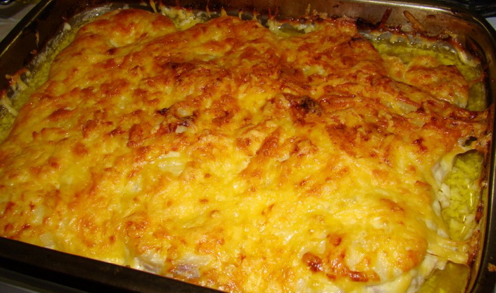- Nous obtenons, graisser le dessus avec une cuillerée de mayonnaise, saupoudrer de fromage et faire frire le plat jusqu'à ce qu'il soit doré.