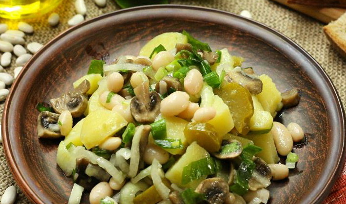 - Salades aux pommes de terre et aux champignons marinés