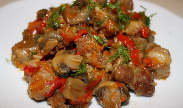 Champignons cuits à la viande et aux légumes