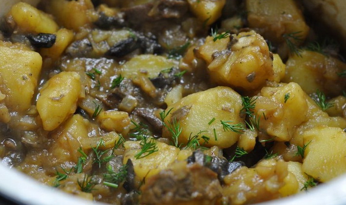 - Ragoût de pommes de terre aux champignons marinés et à la crème sure