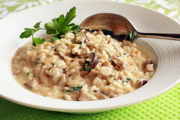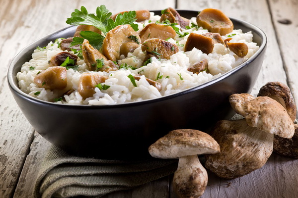 Risotto à la bouillie et aux champignons: recettes