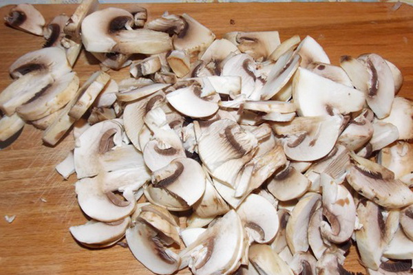 1. Les champignons doivent être nettoyés, couper en petits cubes et faire revenir dans une poêle bien réchauffée dans de l’huile végétale jusqu'à tendreté.