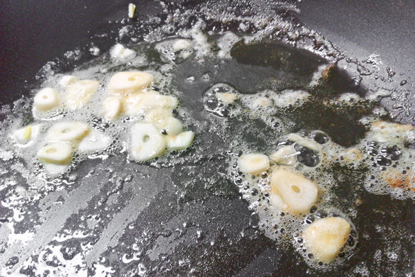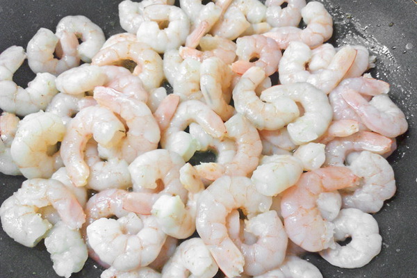 4. Crevettes frites dans l'huile et l'ail, mettre dans un bol.