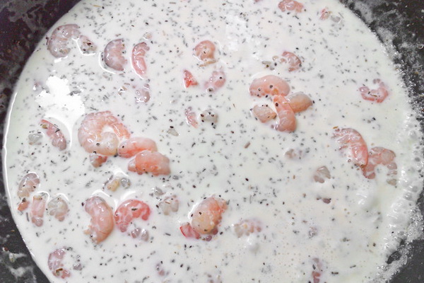 - Recette de crevettes et de champignon dans une sauce crémeuse