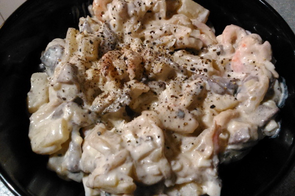 - Champignons aux crevettes et au fromage avec sauce à la crème sure