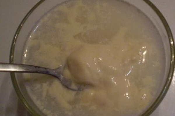 9. Dans la crème sure, tartiner une cuillerée de farine, remuez pour éviter la formation de grumeaux et versez dans une casserole. Bien mélanger et laisser mijoter quelques minutes. En fin de cuisson, mettez les oignons verts hachés dans un plat.