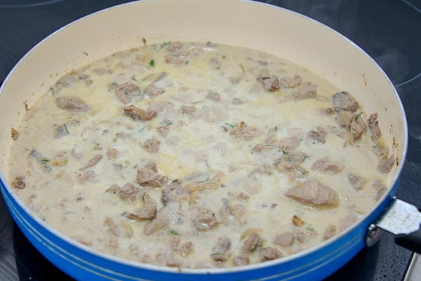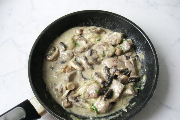 Le foie de poulet avec des champignons dans une sauce crémeuse sera un bon ajout à tout plat d'accompagnement.