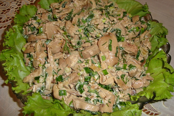 - Recette de salade avec des couches de foie de poulet et champignons