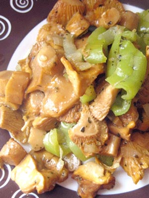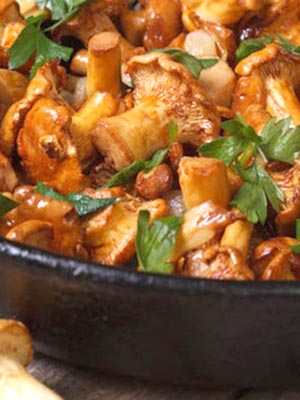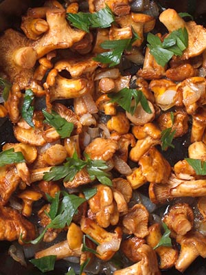 Champignons girolles frits à l'oignon au beurre
