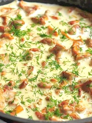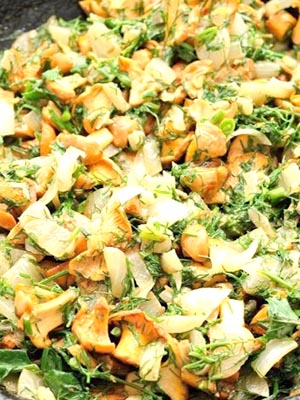 Chanterelles frites avec oignons, crème sure et zira