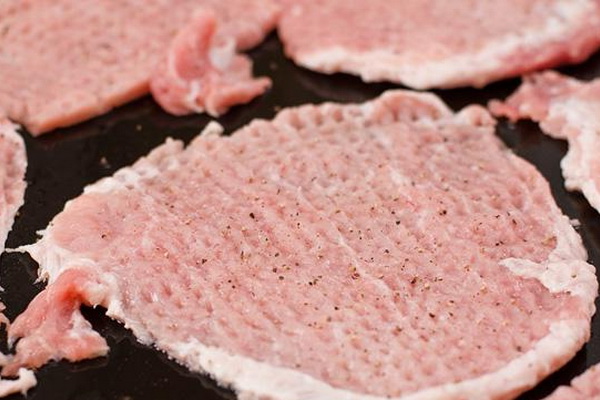 Lavez la viande à l'eau courante, séchez-la avec un essuie-tout, coupez-la en côtelettes (en moyenne 5 à 6 morceaux) et fouettez bien à travers le film étirable.