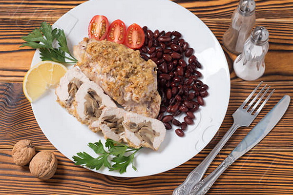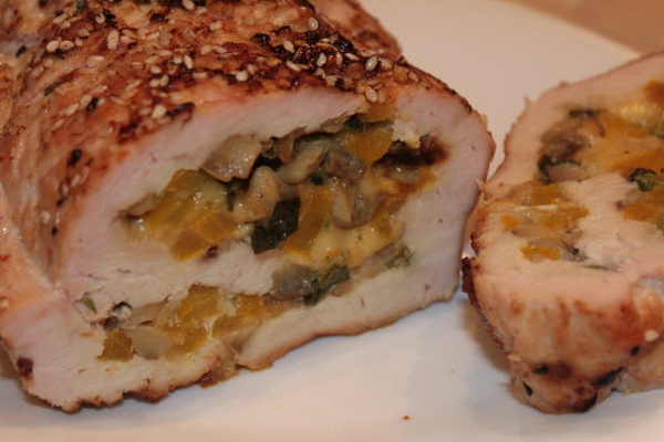 Les champignons séchés doivent d'abord être trempés pendant 30 à 50 minutes, puis hachés et frits avec les oignons dans l'huile végétale avec 50 g de beurre. Après l'apparition d'une couleur dorée, vous devez ajouter l'ail et les champignons frais, émincés, le thym, les épices et le sel, les faire frire jusqu'à ce que l'excès d'humidité s'évapore. Lorsque vous faites cuire des légumes et des champignons, vous devez préparer le filet - pas entièrement coupé en deux, se déplier comme un livre. Lorsque la garniture est cuite, vous devez la mettre sur le filet, la rouler en rouleau et la fixer avec de la ficelle. Le pain formé doit être frit de tous les côtés à feu vif, puis placé dans un four préchauffé à 200 degrés pendant 35 à 45 minutes pour la cuisson.