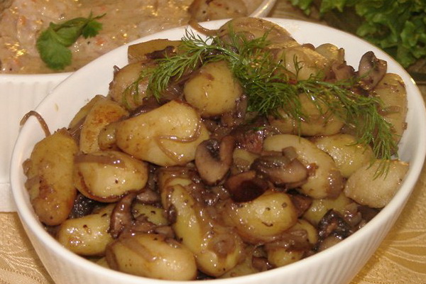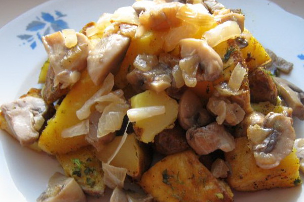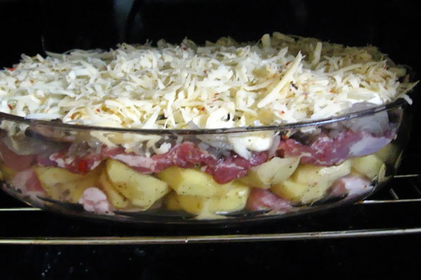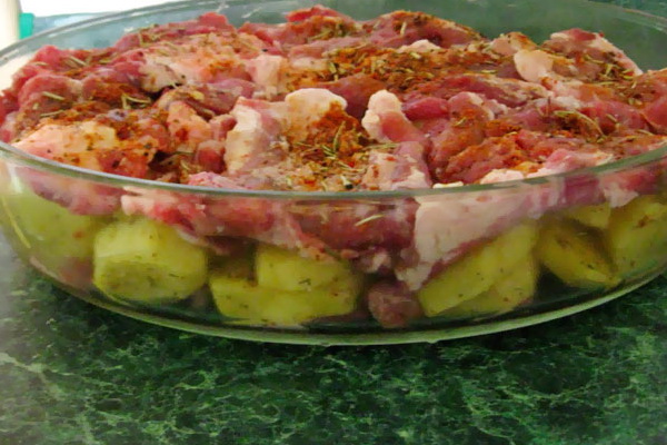 - Recette pour la viande au four avec pommes de terre, champignons et porc