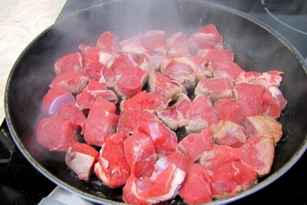 3. laver la viande, séchez, coupez les en morceaux de taille moyenne, faites les cuire à feu vif jusqu'à ce qu'une croûte dorée apparaisse;