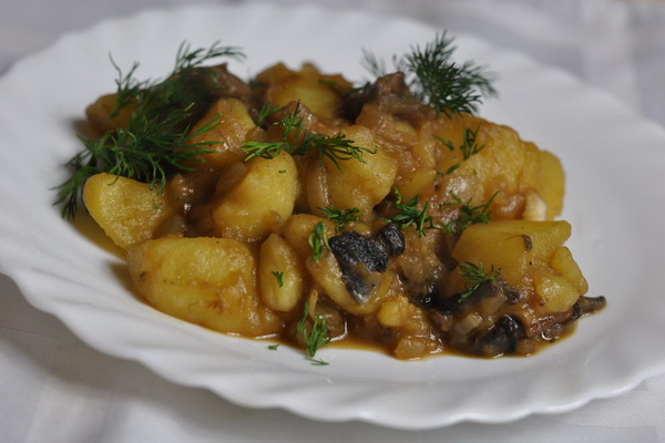Viande française aux champignons séchés et pommes de terre