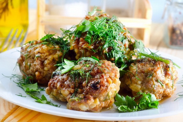 Le porc, le chou, les champignons, l'oignon, le riz et l'ail sont passés dans un hachoir à viande. Ajoutez trois jaunes d’œufs, des herbes hachées, salez, poivrez et mélangez bien à la farce. Former de petites côtelettes à partir de cette farce.
