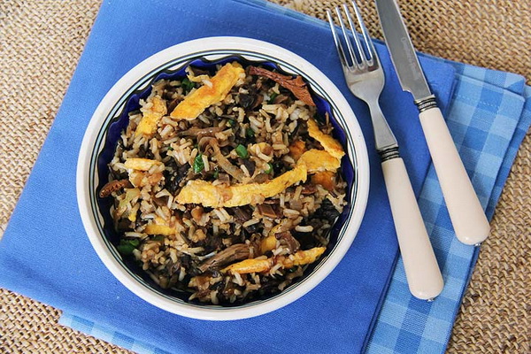 - Savoureuse salade aux champignons et à l'omelette