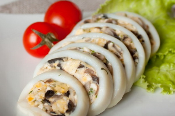 - Calmars farcis aux oeufs brouillés et champignons pour la table de fête