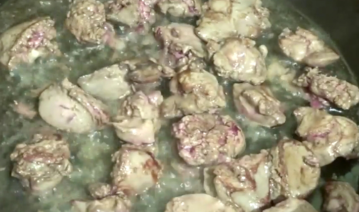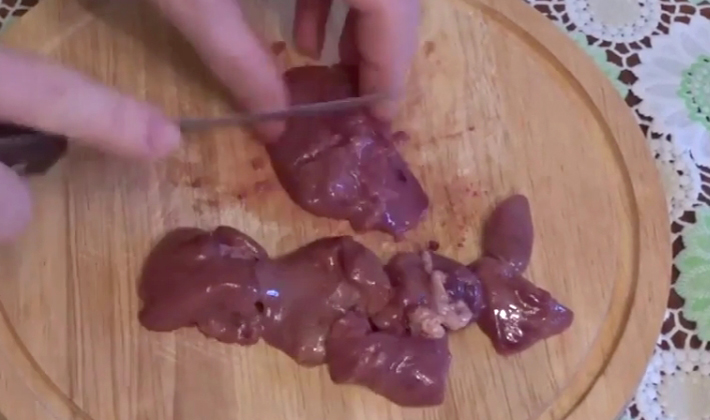 Les abats doivent être lavés à l'eau froide et hachés avec des cubes de 3-4 cm.