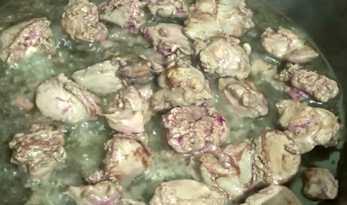 Versez l'huile dans une casserole, étalez le foie et faites frire pendant 25 minutes.