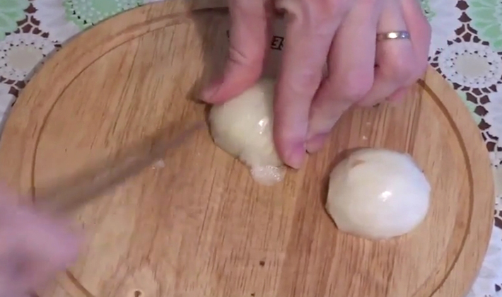 Pendant que les abats sont cuits, épluchez les oignons et les champignons, puis coupez-les en lanières.