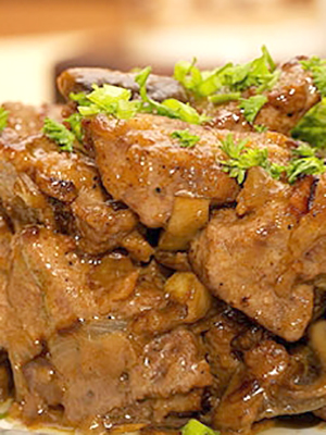 Recette de foie de porc aux champignons porcini cuits dans une sauce à la crème sure