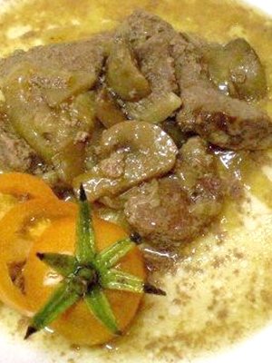 Entrer dans le foie et laisser mijoter 10 minutes, saupoudrer de feuilles de verdure finement hachées.