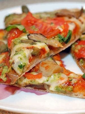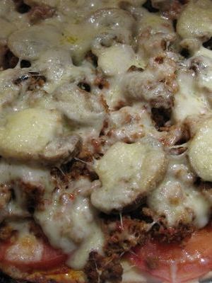 - Pizza à la viande hachée, tomates fraîches et champignons