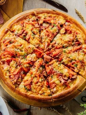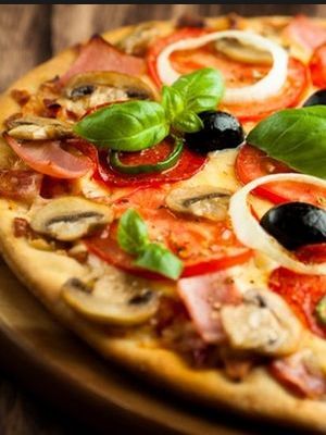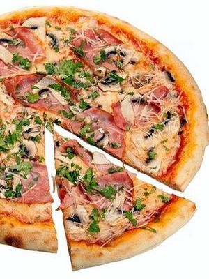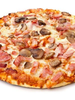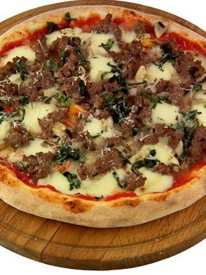 - Pizza à la viande hachée, aux champignons frais et au saucisson