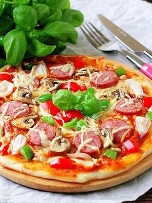 Selon les ménagères qualifiées, une pizza à la viande hachée, aux champignons frais et aux saucisses s'avère incroyablement savoureuse, ce qui vous permet de ne pas prendre en compte le coût considérable de sa préparation.