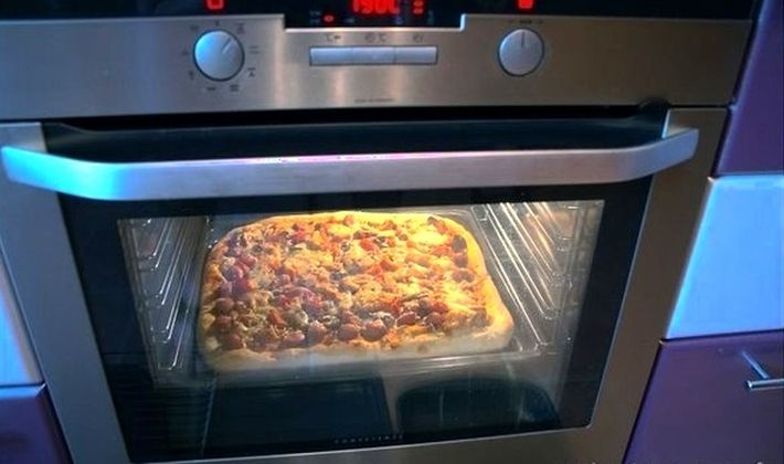 - Pour le traitement thermique, laissez la plaque de cuisson avec la pizza dans un four préchauffé à 200 degrés pendant 20 à 25 minutes.