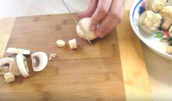 - Une fois que les champignons sont lavés, ils devraient être épongés avec du papier absorbant et coupés en fines tranches.